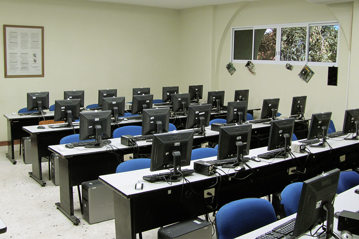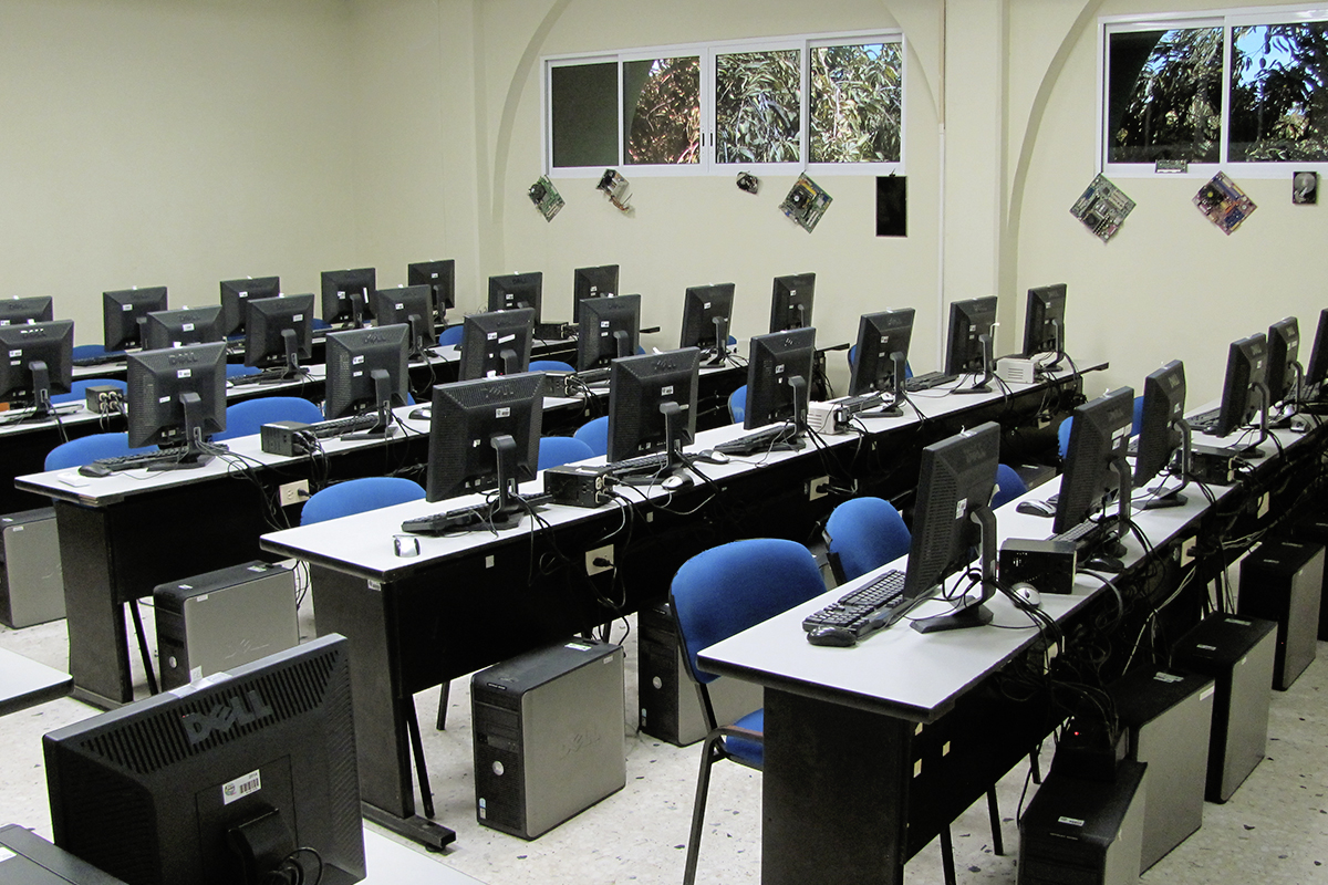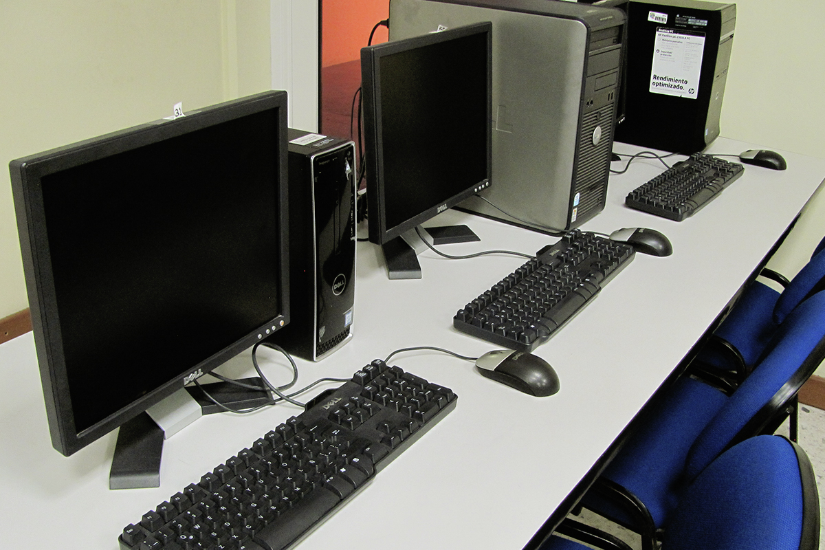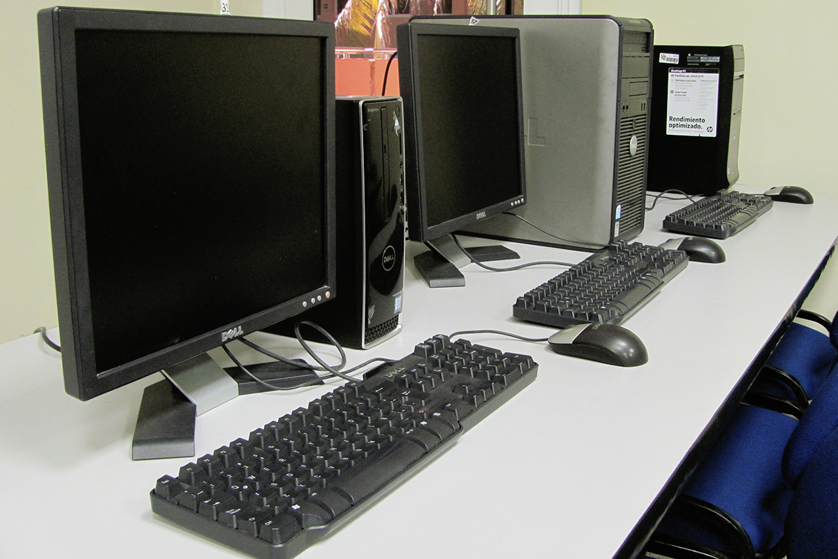Computadoras tipo escritorio listas para el desarrollo de actividades académicas.