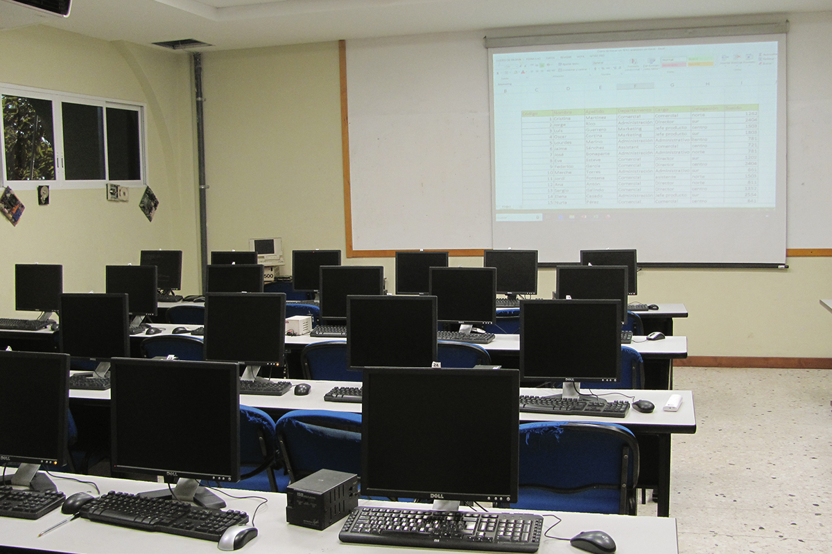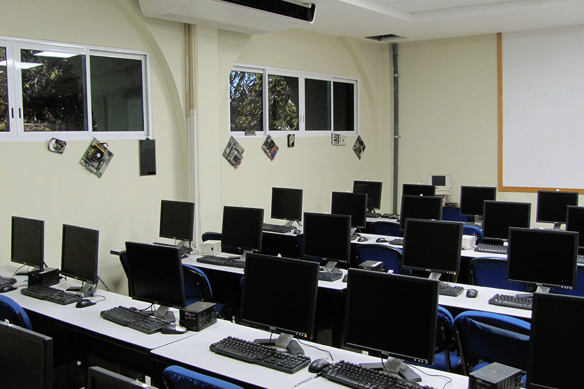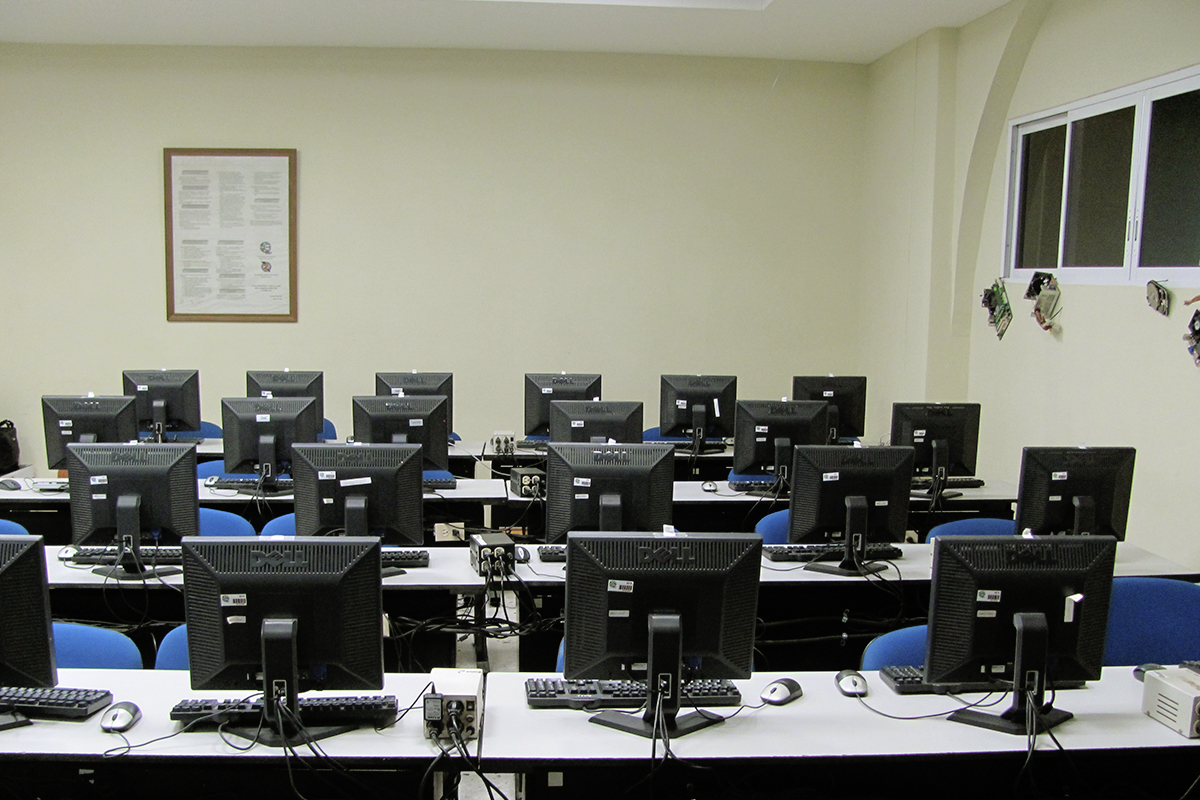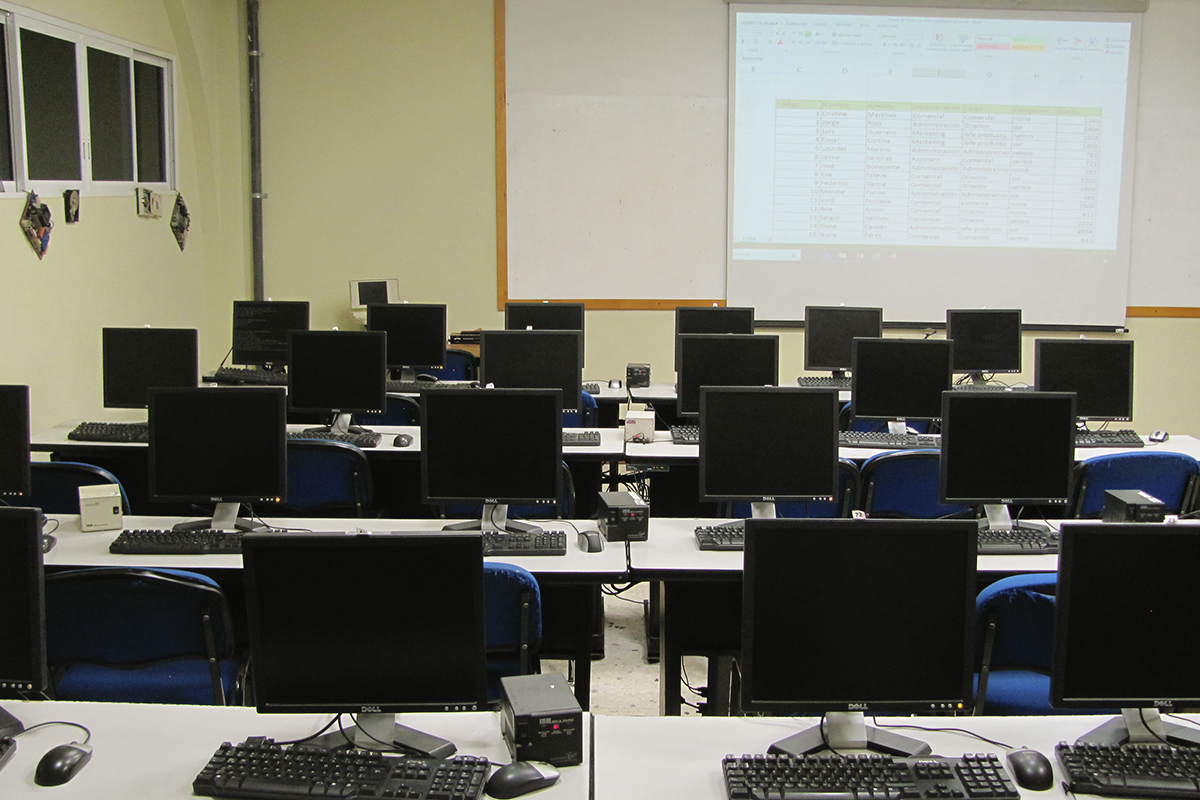 Computadoras tipo escritorio listas para el desarrollo de actividades académicas.