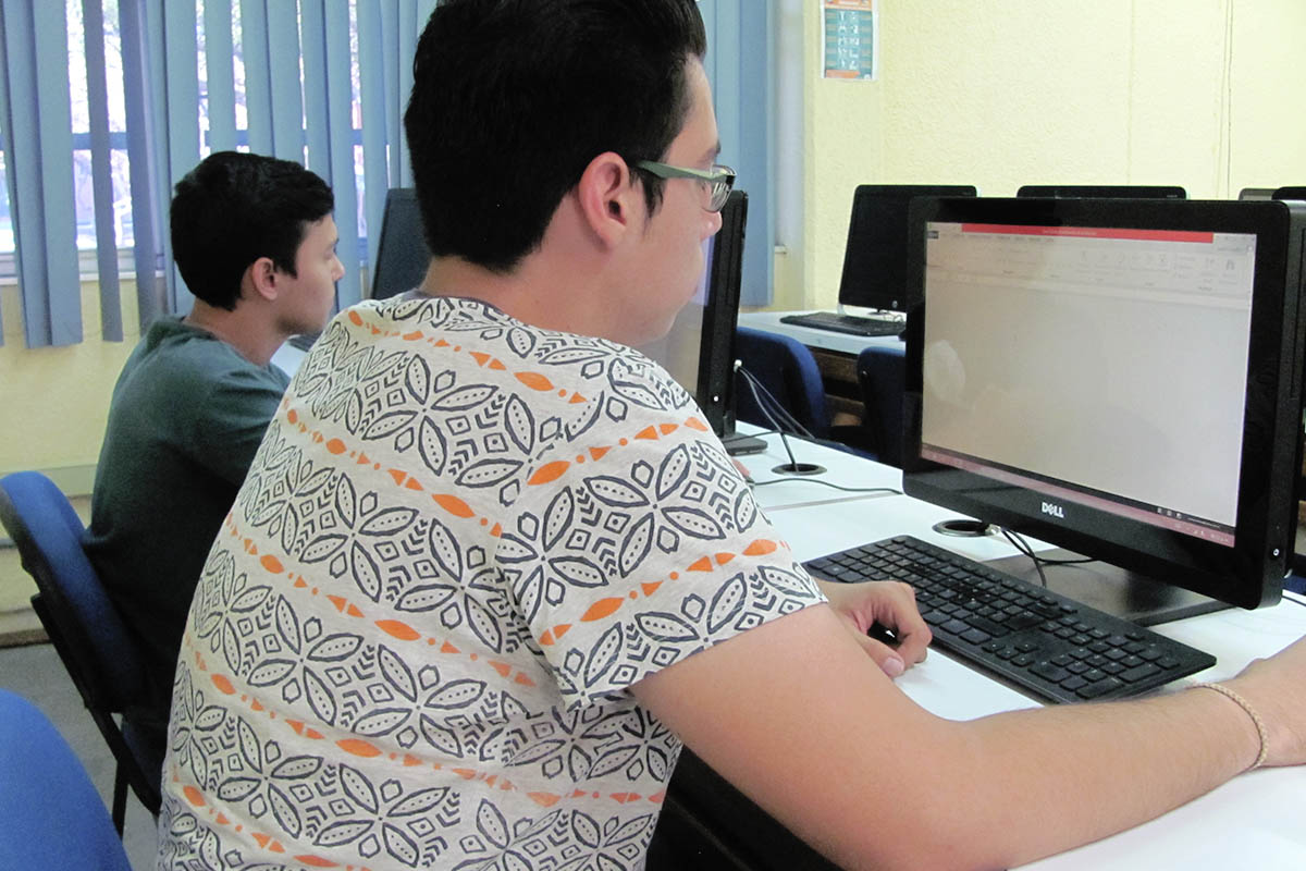 Las clases impartidas en el centro de cómputo de Pesquerías a alumnos de la Ingeniería en Pesquerías son interactivas gracias al uso de las computadoras para acceder a aplicaciones especializadas y al equipo de proyección que hace más sencillo el desarrollo de prácticas durante clase.
