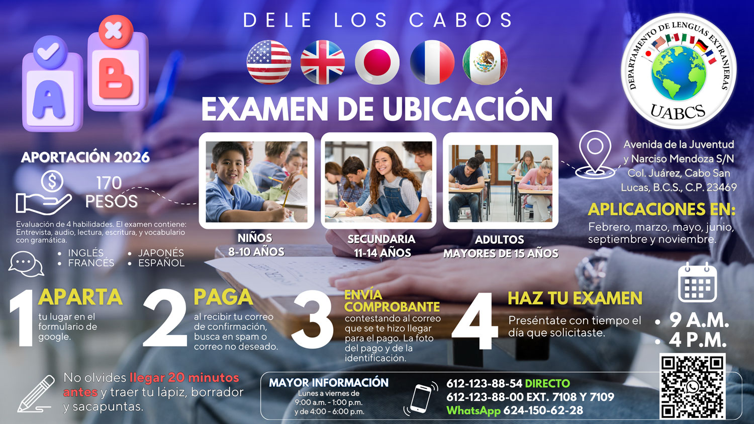 Entonces realiza el examen de ubicación presencial o en línea. Con esta evaluación puedes saltar niveles y descubrir a cuál perteneces de nuestro sistema.